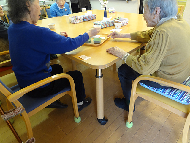 | 11:00 | 余暇タイム | ゆっくりする時間。オセロやトランプ、パズルなどを楽しんでいただけます。 囲碁や将棋仲間と対局しています。 |