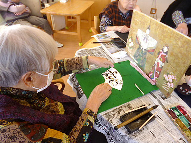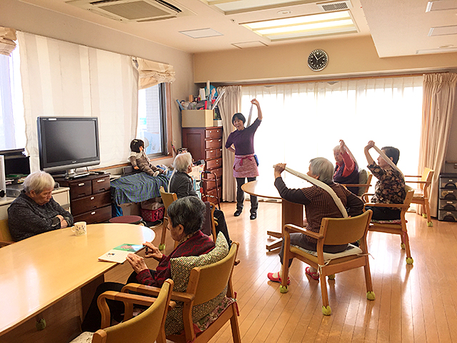 「その人らしく穏やかに生活できる環境づくり――そのために、「止めない介護」を目指すグループホームです。おおむね、中程度の認知症高齢者に家庭に近い生活をしていただき、その人がその人らしい尊厳を持って生きるための援助をします。認知症の進行を抑え、軽減させることを目標に、種々の療法をご提供します。